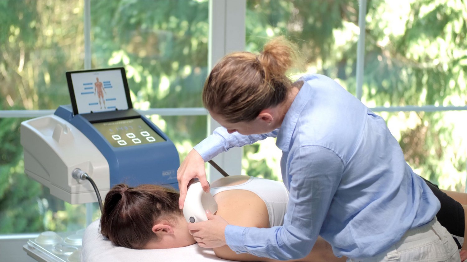 Aktuell haben wir unser bisheriges Behandlungsspektrum mit der Punktförmigen Fokussierten Stoßwelle um eine Linienförmige Fokussierte Stoßwelle (Volumen ESWT) erweitert, die sich besonders bei myofazialen und Triggerpunkt Problematiken eignet. Ein weiterer Anwendungsbereich ist die Unterstützung der muskulären Regeneration im Sport und bei bewegungsintensiven Berufen.